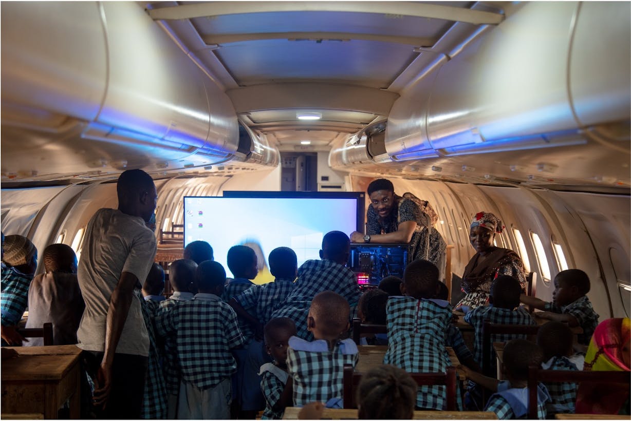 When we are building, we invite school kids to see. Even when we are doing installations or building the architecture or the building itself, the point is that it’s like an archaeological exercise. There’s an ideological thing that we are excavating, and all those memories are embedded within these objects, which normally would have disappeared. I do this even with objects like airplanes. I buy these old airplanes and transform them into classrooms. What does it mean to teach children coding in an airplane, in a rural area which normally is out of sight within this context?