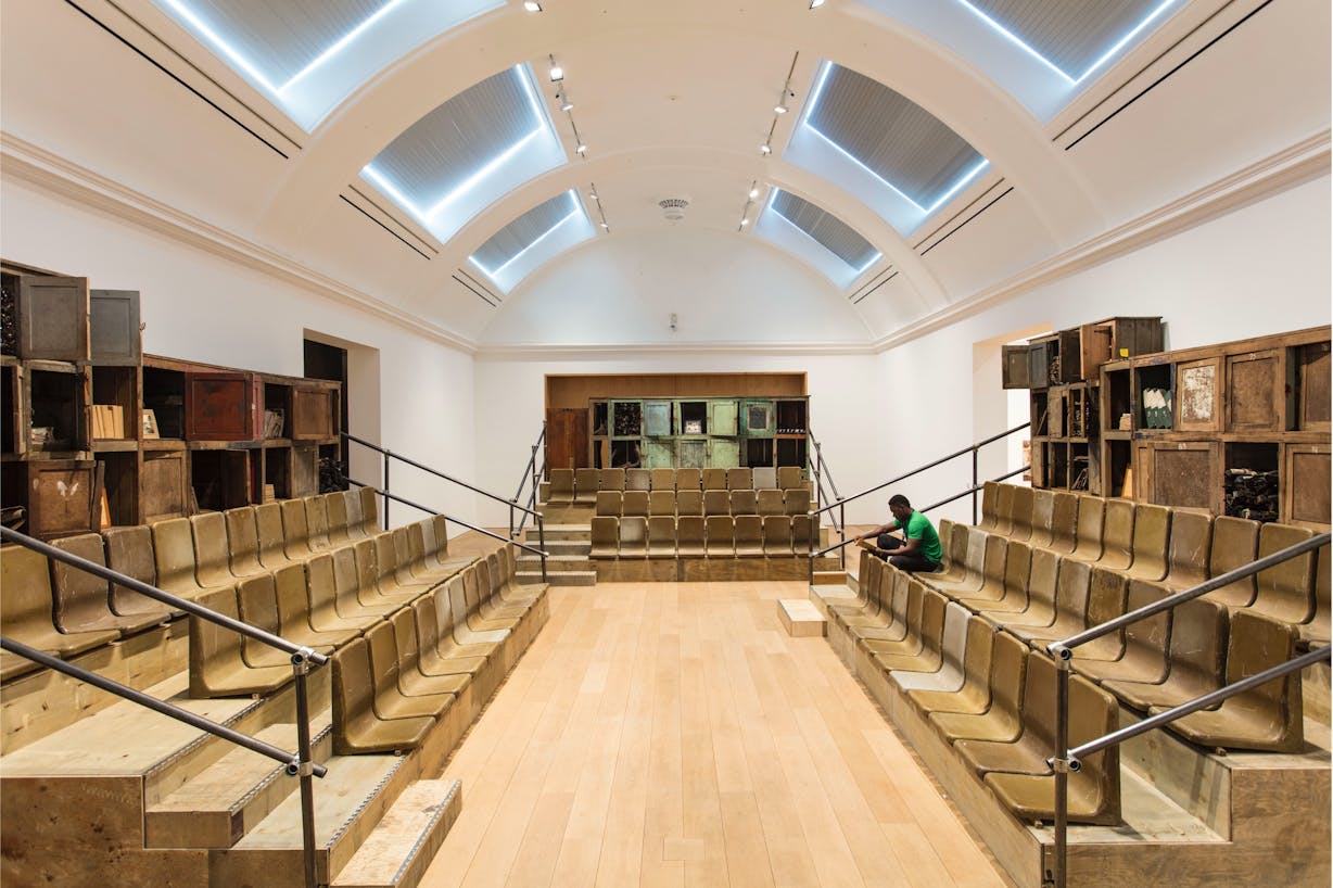 Ibrahim Mahama: Certainly. It’s undeniably very beautiful. I really like this space for what it is – just thinking about the architectural details. I remember yesterday, when we were going up to see the other parts of the building, I was more interested in seeing the shape of the building from the rooftop, seeing how simple it is from the outside, but the inside is very intricate and detailed. Certainly, of course, it also reminds us of a certain specific period, but I think it’s quite interesting. One might think that maybe the space, in terms of its architectural composition, doesn’t lend itself to contemporary work – that it somehow might be a bit conflicting – but that’s the point of art and culture: to create those tensions, and it’s literally a beautiful tension.