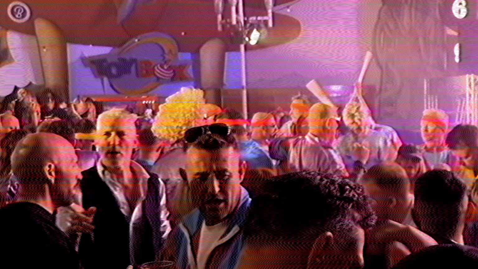Throughout the film, the puppet keeps reappearing, channeling dark and light, flopping around, never settling, never firm. In that physical apparition – one of the few elements to occupy the full 16:9 ratio of the video – I gleaned the presence-absence of a commitment to an accelerated editing rhythm, colour schema, and fluctuating ratio-proportions. We also encounter grainy surveillance of containment camps, a menacing dance floor in hyper-saturated VHS-like colour, and, at repeating intervals, furious mobs burning down homes for migrants (the conceptual focus of the piece).